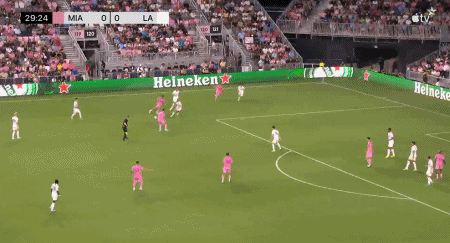 北京时间8月17日美国职业大联盟 常规赛,迈阿密国际主场对阵洛杉矶银河。迈阿密国际阿尔巴破门。半场战罢,场上比分迈阿密国际 1-0 洛杉矶银河。